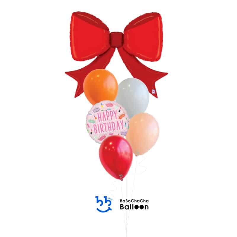 Product: [Birthday] Red Bow Birthday Mixed Balloons Bouquet (9pcs)