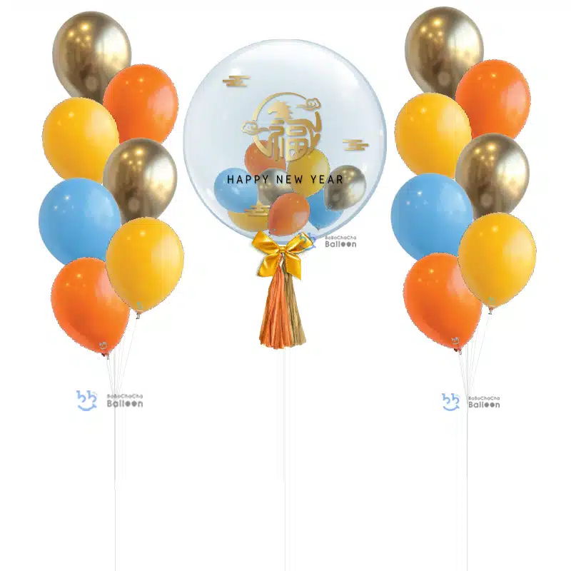 Product: 24″ Bubble Balloon Gold Orange Set – Auspicious Bloom Lunar Design